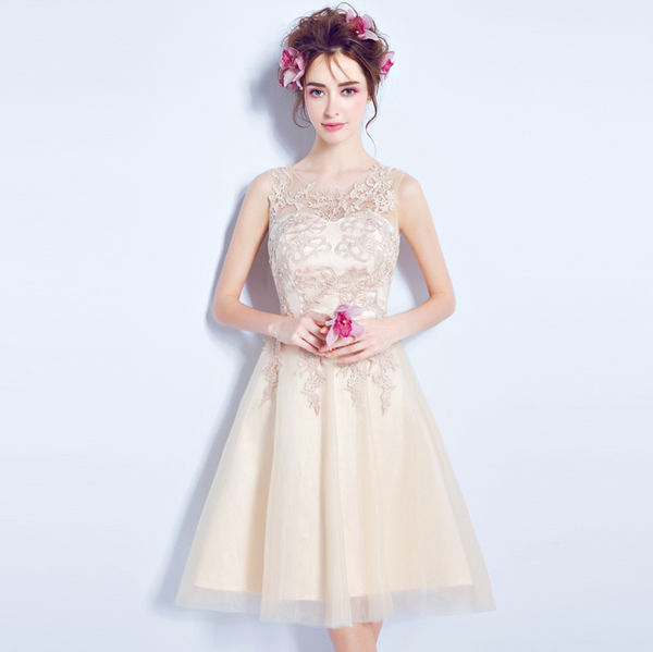 > Wedding & Events > Evening Dresses > Champagne lace on the bridesmaid dress for the bride wedding dresses and the wedding dressesStyle&Regions:European