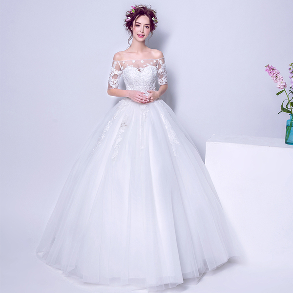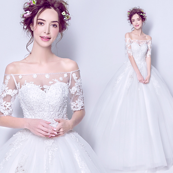 > Wedding & Events > Wedding Dresses > Flower perspective of a word shoulder short sleeved Princess Bride Wedding DressStyle&Regions:European