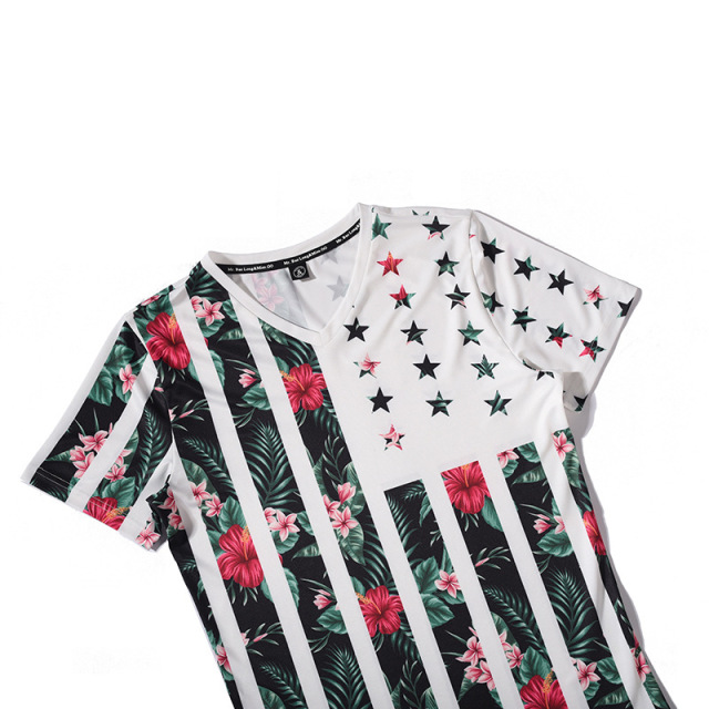 > MAN > Man T-shirt > New V-neck Elastic Men’s Wear Plants Flowers Printed 3D T-shirts Style&Regions:European