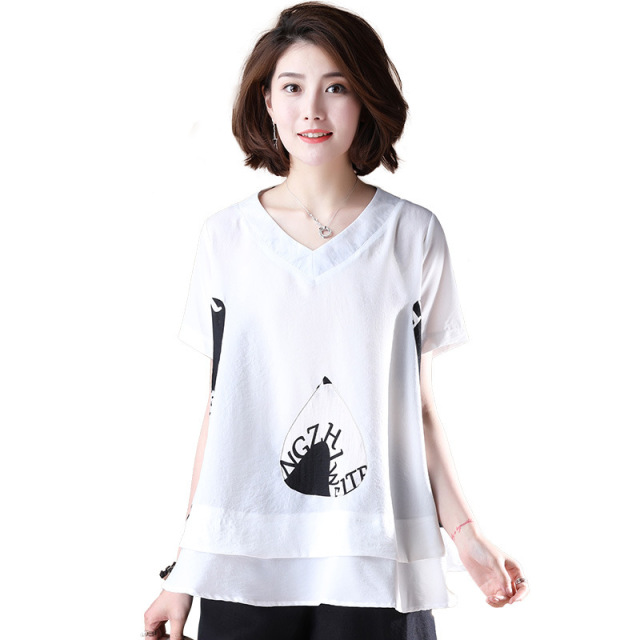 > WOMEN > T-shirt > Printed T-shirt V-collar Short Sleeve Loose Top Summer Dress Style&Regions:Asia