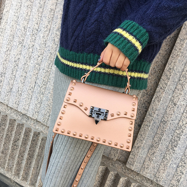 > Women Bags > Shoulder Bags > Rivet Portable Single Shoulder Bag New Korean women matte matte jelly bag all-match Crossbody Bag SmallStyle&Regions:European