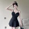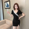 Deep V-strap dress with low cut and high waist, slimming short skirt