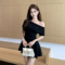 Waist slimming nightclub sexy hanging neck exposed shoulder bag buttocks short skirt