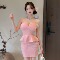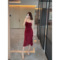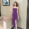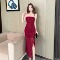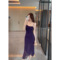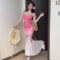 Splicing flower wrapped hip slit long skirt pure desire spicy girl with chest cushion suspender dress