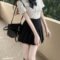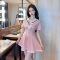 Lotus leaf edge short dress with hip hugging base and suspender to enhance height