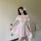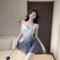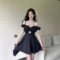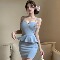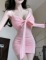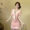 Square neck sexy dress, night shop spicy girl pleated short skirt, tight fitting hip hugging skirt