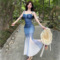 Mesh gradient color pure desire spicy girl low cut waist slimming camisole wrapped skirt