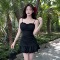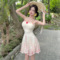 Straight shoulder strap, chest cushion, camisole dress for women in summer, small stature, slim waist, A-line large swin
