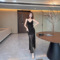 Mesh gradient camisole dress for women, waist bag, buttocks, fish tail long dress