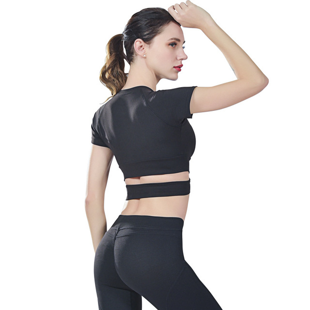 > Activewear > Yoga Suits > Spring and summer new umbilical sexy yoga dress sport jacket short sleeved womenSource categories:Goods in stock