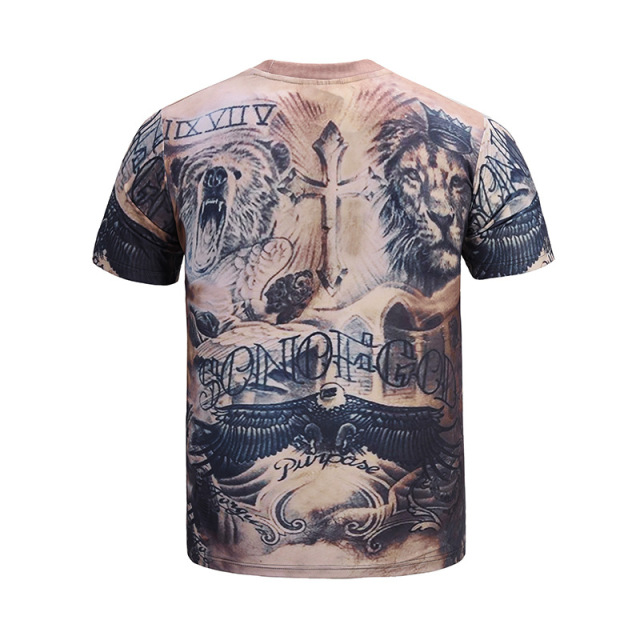 > MAN > Man T-shirt > Summer New Lion Muscle Tattoo 3D Printed T-shirt Short-sleeved Style&Regions:European