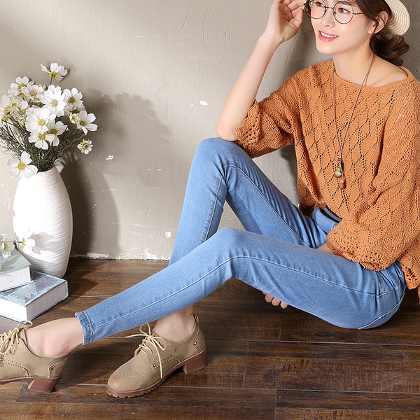 > Denim > Jeans > years of spring and autumn high waist jeans female trousers elastic waist elastic thin slim pencil pantsStyle&Regions:European